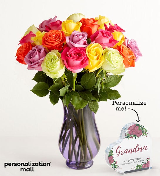 NEW Here’s a gift that will remind her of just how much she means to you not only on Mother’s Day but all year long. Personalize this heart-shaped acrylic keepsake with a message of love she’ll be proud to display, then choose one of four dazzling bouquets to accompany it, each of which comes with its own specially selected vase.